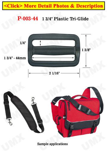 P-003-44, extra large size, plastic tri-glide adjustabale strap buckles come with 2 1/16" outside diameter and 1 3/4" inside diameter. It is a great designed strap buckles for adjusting strap length. It is great for apparel, backpacks and crafts making.